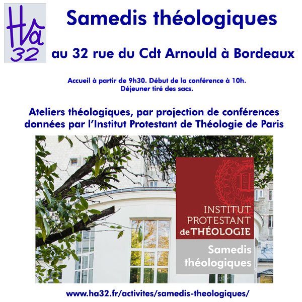 Cours publiques de l’Institut Protestant de Théologie de Paris, présentés en video-conférence lors des Samedis-Théologiques au Hâ 32.